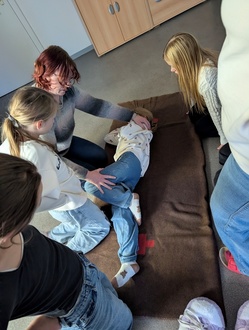 Jenny hat währenddessen praxisnah mit den Kindern die Sofortmaßnahmen besprochen und jahreszeitliche Gefahrenquellen mit einbezogen.