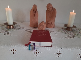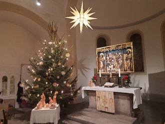 Die Krippendarstellung aus Ton gefertigt von Frau Ingeborg Runkel (1921-2003) aus Gerstungen erfreut jedes Jahr auf dem Altar