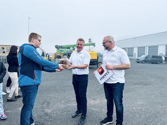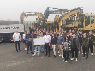 Am Dienstag, den 26.09.2023, fand dann die feierliche Übergabe des Spendenschecks auf dem Gelände der Firma Hasselmann statt. Doch diesmal machte sich die Schulleiterin nicht alleine auf den Weg. Begleitet wurde sie von den beiden achten Klassen und Frau Martens, die Verantwortliche für die mediale Präsentation der Eichelbergschule. Die Schülerinnen und Schüler überreichten eine XXL-Packung Merci sowie ein großes Glas mit selbst gebackenen Plätzchen, welche in der Woche zuvor mit Unterstützung von Frau Ebenau, ehemalige Lehrerin der Eichelbergschule und Fördervereinsvorsitzende, in der Schulküche gebacken und gestaltet wurden.