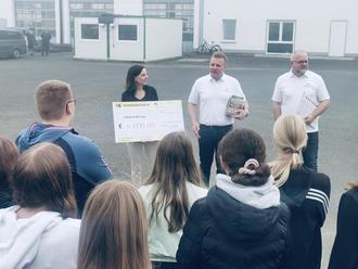 Statt Geldgeschenken wünschte sich die Firma allerdings Geldspenden zu Gunsten der Eichelbergschule. Dies ließen sich verschiedene Firmen nicht zweimal sagen und so gingen vor, während und selbst nach den Sommerferien regelmäßig Spendensummen auf dem Konto des Schulfördervereins ein. Insgesamt kamen durch diesen Wunsch 4825 Euro zusammen. Bei der Spendenübergabe traute Katrin Schliemann, Schulleiterin der Eichelbergschule, ihren Ohren kaum. Denn die beiden Geschäftsführer der Firma Hasselmann, Oliver Schietrumpf und Oliver Philipps, rundeten diese Summe auf unfassbare 6000 Euro auf.