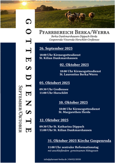| Berka/Werra: | 14-17 Uhr, Pfarrhaus Berka/Werra, Kirchplatz 9 |