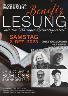 Die Benefiz-Weihnachtslesungen des Thüringer Schriftstellerverbandes in jährlich wechselnden Thüringer Städten und Dörfern sind seit über 20 Jahren Tradition. Ursprünglich wurde in sozialen Einrichtungen gelesen, nunmehr in Bibliotheken oder an anderen kulturellen Orten. Von den Zuhörern wird ein kleiner Obolus erbeten, der einem guten Zweck gespendet wird, quasi ein kulturelles Weihnachtsgeschenk für eine Einrichtung in der Ortschaft der Lesung.