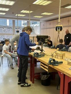 Die Firma Pollmeier aus Creuzburg, die den Vormittag im Werkenraum der Schule verbrachte, stellte zunächst die Eigenschaften von Holz vor und erläuterte, weshalb die Feuchtigkeit dieses Rohstoffes so wichtig für die Weiterverarbeitung ist. Anschließend durften die Mädchen und Jungen selbstständig Teelichthalter herstellen.