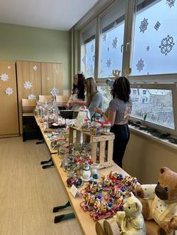 In diesem Jahr erfolgte der Verkauf von vielen bunten Torten, Kuchen und Muffins. Natürlich wurde auch reichlich Herzhaftes wie Pizzabrötchen oder Brezeln angeboten. Aber auch verschiedene Weihnachtsdekoration oder kleine Weihnachtsgeschenke, die von verschiedenen Schulklassen gebastelt wurden, konnten erworben werden.