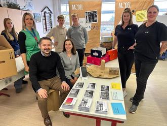 In der Turnhalle ging es an diesem Tag sportlich zu, da die Bundeswehr mit den Schülerinnen und Schülern Fitnesstests durchführte. Besonders praktisch ging es im Raum der Firma Model GmbH zu. Dort baute man aus Pappe stabile Sitzmöbel oder Handyhalterungen.