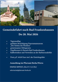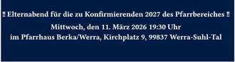 | Evangelisches Pfarramt Berka/Werra Kirchplatz 9 99837 Werra-Suhl-Tal www.pfarramt-berka.de | Pfarrer Dr. Andre Krauß 036922/28350 krauss@pfarramt-berka.de