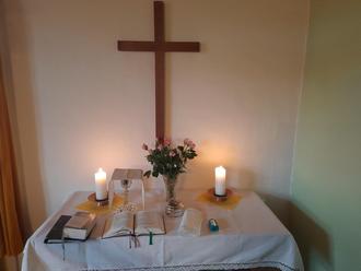 Der Altar zum Gottesdienst im Gemeinderaum Fernbreitenbach