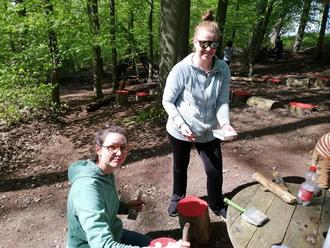 Der Winter ist vorbei und die 15 Kinder der Kinderarche Wünschensuhl zieht es ins Grüne. Damit ihr schönes Ausflugsziel im nahen Wald wieder glänzt, haben Kinder, Eltern, Großeltern und Erzieherinnen in einer gemeinsamen Aktion am 8. Mai 2023 das Zwergen-Wäldchen sauber gemacht, Laub und verdorrte Äste entfernt sowie die Tipis neu aufgebaut. Mit viel bunter Farbe wurden Baumstämme und die Waldküche verschönert.