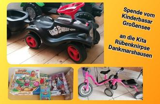 Von der Einnahmesumme der Veranstaltung hat das Kinderbasarteam Großensee an den Kindergarten Rübenknirpse in Dankmarshausen eine Sachspende im Wert von knapp 80 Euro übergeben.
