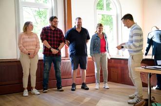 Von links: Nobert Wagner, Johannes Kümmel, Bürgermeister Maik Klotzbach, Im Hintergrund: Hauptamtsleiter Maxim Mähler