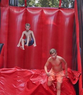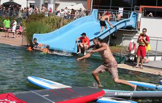 Alleine die rund 75 m lange, aufblasbare und spektakuläre Hindernisbahn wird Lust auf mehr machen. Der gesamte Parcours umfasst rund 400 Meter, gespickt mit tollen Herausforderungen, u.a. eine Brücke aus Standup-Boards, Mutsprünge vom 1 Meterbrett, vielfältige Hindernisse zu überklettern und vieles mehr.