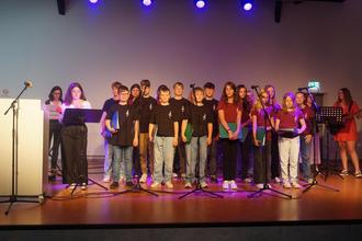 Gestaltet wurde die Feierstunde von unserem Schulchor, der u.a. Lieder wie „Für immer bleibt“ von Benne oder das bereits erwähnte Lied „Kompass“ von Udo Lindenberg präsentierte. Begleitet wurde der Chor von unserer Schulband.