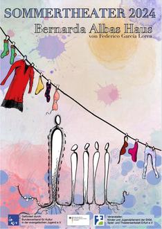 Im Rahmen der 31. Sommertheater-Tournee durch Thüringen und Sachsen-Anhalt macht der aktuelle Jahrgang der Fortbildung „Theaterpädagogik“ des Kinder- und Jugendpfarramtes der Evangelischen Kirche Mitteldeutschlands (EKM) sowie der Spiel- und Theaterwerkstatt Erfurt e.V. am 27. Juli 2024 auf dem Gerstunger Schlosshof halt. In Kooperation mit der Theatergruppe KunstGENuss, wird die Inszenierung „Bernarda Albas Haus“ von Federico García Lorca gezeigt.