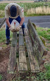 Am Hohen Rod kam die Bank wieder in die richtige Stellung, das Moos auf den Sitzflächen wurde beseitigt und der Platz zugänglich gemacht. Auch andere Sitzgruppen und Bänke wurden gestrichen, das Gras herum gemäht, damit die Rastplätze zum Verweilen einladen.