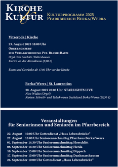 Ob Konzerte, Lesungen, Theaterprojekte oder interaktive Formate - „Kirche und Kultur“ will Räume schaffen, in denen Spiritualität und Glaube erfahrbar wird - im freien Spiel der Künste und im offenen Gespräch über das, was uns im Innersten bewegt.