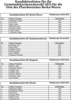 Die Wahlen in den Gemeinden unseres Pfarrbereiches: