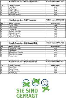 In den nächsten Wochen erhalten Sie ihre Briefwahlunterlagen. Sie können per Brief wählen oder an den untengenannten Wahlterminen direkt in ihren Heimatorten am Wahltag ihre Stimme abgeben.