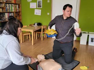 Einweisung der Erzieherinnen in die Handhabung des Defi vor Ort