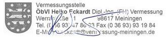 Gegen das Ergebnis der Liegenschaftsvermessung kann innerhalb eines Monats nach Ablauf der Offenlegungsfrist bei ÖbVI Heiko Eckardt Dipl.-Ing. (FH) Werrastraße 11, in 98617 Meiningen schriftlich oder zur Niederschrift Widerspruch erhoben werden.