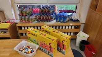 Und so kam es, dass Andreas Heidenreich am 16.11.2023 hier bei uns war und die Kinder der Igelgruppe sowie einige der Vorschulkinder innerhalb von 60 Minuten so viele Herzen wie möglich gebaut haben. Ein Kind schaffte es, 18 Herzen innerhalb der vorgegebenen Zeit zu bauen. Und genau so viele Pakete bekommen nun hilfsbedürftige Kinder von Antenne Thüringen. Aber auch wir erhielten für alle drei großen Gruppen viele tolle Legopakete und freuen uns darüber alle wirklich ganz sehr!