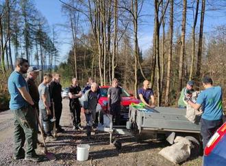 Am 6. April 2024 hat der Jagdvorsteher unseren Förster und anschließend die vorgenannten Vereine und Helfer „zusammengetrommelt“, 500 Pflanzen organisiert und eine Nachpflanzung „Am Trettersberg“ durchgeführt. Die Besonderheit auf dem Waldstück, es ist ein extremer Steilhang, dies bedeutet, dass die Pflanzen unter erschwerten Bedingungen ausgebracht werden mussten.