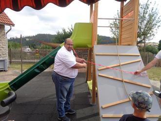 Am 15.06.2023 war es dann so weit. Der aufgefrischte Spielplatz mit der neuen Spielkombination wurde vom Bürgermeister René Pfötsch seiner Bestimmung übergeben. Nun können Waisaspatzen wieder klettern, rutschen, hangeln, wippen und, und, und - ihrer Phantasie sind keine Grenzen gesetzt.