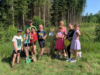 Von den Waldjugendspielen in diesem Jahr brachten wir Viertklässler wieder den Baum des Jahres mit, die Rot Eiche.
