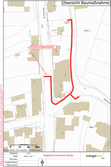 Die energis-Netzgesellschaft mbH verlegt in Riegelsberg in der Saarbrücker-Straße, Ziegelhütter-Straße und in der Hilschbacher- Straße mehrere Nieder- und Mittelspannungskabel zur Ortsnetzversorgung.