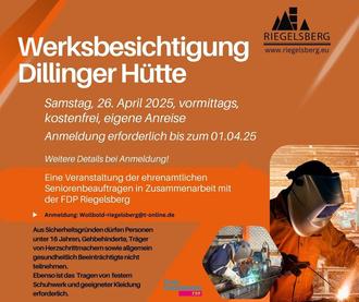 Die Führung dauert von 9 – 12 Uhr und im Anschluss besteht die Möglichkeit auf einen gemeinsamen Imbiss in Dillingen auf Selbstzahlerbasis.