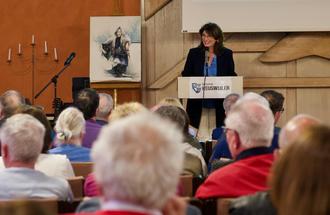 Redaktionsleiterin Monika Jungfleisch stellte im Rathausfestsaal das neue Köllertaler Jahrbuch vor. Foto: Alexander M. Groß