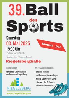 Mit dieser traditionsreichen Veranstaltung würdigt die Gemeinde jene einheimischen Sportlerinnen und Sportler aus den Riegelsberger Vereinen, die im vergangenen Jahr auf Bundes- und Landesebene herausragende Erfolge erzielt haben. „Der Ball des Sports ist das Dankeschön der Gemeinde Riegelsberg für ihre erfolgreichen Athletinnen und Athleten“ so der Bürgermeister Klaus Häusle.
