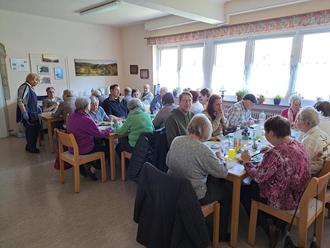 Ein volles Haus beim Mittagessen am 05.04.2023; es fehlen noch die 14 die "Abhol-Mittagessen" im Bild.
