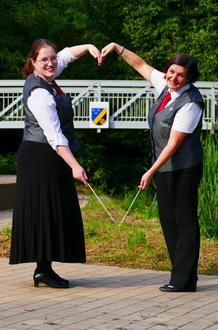 Musik mit Herz: Die Dirigentinnen Victoria Frank (Jugendorchester, links) und Barbara Rosner (Großes Orchester) haben auch in diesem Jahr ein tolles Programm für Sie vorbereitet. Herzliche Einladung.