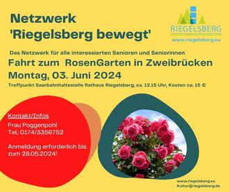 Das “Netzwerk Riegelsberg bewegt” fährt am Montag, den 03. Juni 2024 nach Zweibrücken in den RosenGarten