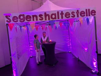 Püttlingen-Köllerbach. „Wir segnen alle“; das versprachen die Haupt- und Ehrenamtlichen der Frauenkirche Köllerbach und der Formatwerkstatt Püttlingen den Besucherinnen und Besuchern des ersten Segenshappening im Pastoralen Raum Völklingen. Diese Zusage lockte viele Menschen am letzten Sonntag im Juni in die Begegnungskirche nach Köllerbach. Eingerahmt in ein fröhliches Fest mit musikalischen Auftritten der MPG (Musikprojektgruppe der Formatwerkstatt), den Chören „Cantata“ und „Unser Chor Püttlingen“, bei dem auch für das leibliche Wohl bestens gesorgt war, ließen sich zahlreiche Gäste in unterschiedlichen Anliegen segnen. Die Ehrenamtlichen, die von den Hauptamtlichen Seelsorgern auf diesen Dienst vorbereitet wurden, spendeten eine Vielzahl unterschiedlicher Segen. Da gab es den Segen für das Paar in langjähriger Beziehung, das Enkelkind, den anstehenden Auslandsaufenthalt eines Abiturienten, genauso wie zur Stärkung in der Trauer und viele mehr. Die Gesegneten fühlten sich getröstet und mit neuer Zuversicht erfüllt und waren z.T. zu Tränen gerührt. Der Andrang vor den Segenshaltestellen, die sich im Kirchenraum der Begegnungskirche befanden, war entsprechend groß. Wer am Fest selbst nicht mehr dazu kam, sich segnen zu lassen, konnte einen gedruckten „Segen to go“ zu verschiedenen Anlässen mit nach Hause nehmen. Gegen Ende des Happenings kamen Tierfreunde, um auf dem Vorhof der Kirche ihre vierbeinigen Lieblinge segnen zu lassen.