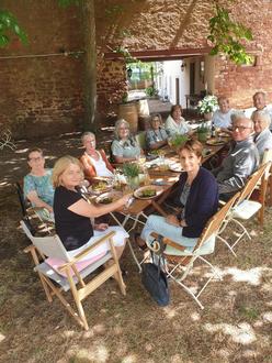Am 13.7.23, nach der letzten Stunde des Französisch-Konversation-Kurses vor der Sommerpause, trafen sich alle Teilnehmenden mit Dozentin Patricia Neises zu einem gemütlichen Beisammensein im schönen Garten des Cafe Ottilie in Riegelsberg.