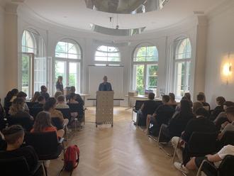 Da die Schülerinnen und Schüler der Klasse 7c im Januar am Internet-Teamwettbewerb Französisch teilgenommen und dort im Niveau F2 (2. und 3. Lernjahr) auf Saarlandebene den ersten Platz erreicht hatten, wurden sie am 27.06.2023 zu einer Siegerehrung in die Villa Europa in Saarbrücken eingeladen. Nach der Preisverleihung durch den französischen Generalkonsul Sébastien Girard durften die Schülerinnen und Schüler an einem Zeichenworkshop mit dem französischen Künstler Tarek Ben Yakhlef teilnehmen und sich dabei noch einmal kreativ mit ihrer Vorstellung der deutsch-französischen Freundschaft beschäftigen.