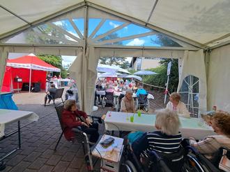 Ein Blick aus dem Zelt beim Sommerdest der AWO Seniorenresidenz "St. Josef"