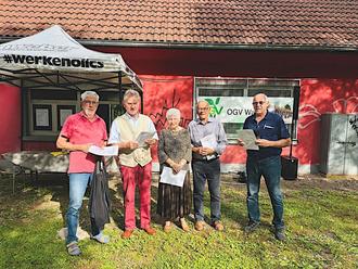 Unser Sommerfest war mal wieder ein Tag an dem wir unsere Sorgen mal vergasen und uns am Leben einfach mal in froher Runde erfreuten. Das Wetter hatte seine Tücken aber es hatte zum richtigen Zeitpunkt sich heiter und trocken eingestellt. So startete das Sommerfest vom OGV um17 Uhr in der gemütlichen Biergartenatmosphäre hinter dem Kelterhaus zum Teil unter Zeltkombinationen oder auch in Freiluft. Der neue erste Vorsitzende Dieter John begrüßte dann die anwesenden Gäste, auch den Einen oder Anderen Ehrengast, bedankte sich bei allen Sponsoren für ihre Spenden so wie den Kuchenspender/innen und dankte auch seinem Team, dass dieses Fest mit allen Anstrengungen in der Vorbereitung so hergerichtet hatte. Dann leitete er über zur Ehrung der Mitglieder für ihre langjährige Zugehörigkeit. Für 40 Jahre wurden geehrt Franz-Josef Alt und Gerhard Benthin, für 50 Jahre Manfred Diehl und Maria Schneider. Dieter John bedankte sich nochmals für so viel Jahre Treue und gab jedem eine Urkunde.