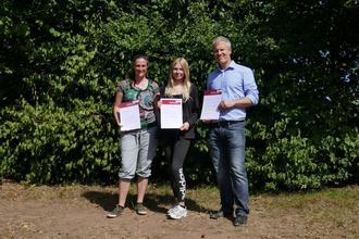 von links nach rechts: Michaela Weber (Betreuungslehrerin), Emma Joachimsen, Daniel Dettloff (Schulleiter)