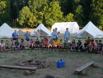 Dieses Jahr war das vom 24. Juli - 30. Juli stattfindende Zeltlager in Riegelsberg etwas ganz Besonderes, denn schon seit 20 Jahren haben Kinder hier an der Kirche St. Matthias die Möglichkeit, eine Woche lang mit Freunden im Zelt zu schlafen, bei Waldspielen, Dorfrallyes und Olympiaden mitzumachen und ihre Kreativität beim Basteln und Schnitzen auszuleben. Abends wird immer am Lagerfeuer gesungen und einmal in der Woche kommt sogar die Feuerwehr für die Wasserrutsche vorbei.