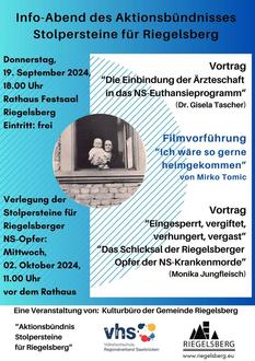 „Aktionsbündnis Stolpersteine für Riegelsberg“, vhs im Regionalverband und Gemeinde Riegelsberg laden zum Vortrag und Filmvorführung im Vorfeld zur Verlegung weiterer Stolpersteine für Krankenmorde in der NS-Zeit