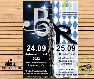 Am Folgetag, den 25. September 2022 laden das Blasorchester und die Gemeinde Riegelsberg zum Oktoberfest der Blasmusik ein.