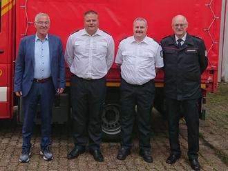 v.l.n.r.: Bürgermeister Klaus Häusle, Löschbezirksführer Manuel Brück, stellvertretender Löschbezirksführer Sascha Dorn, Wehrführer Volker Klein