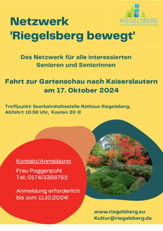 Das “Netzwerk Riegelsberg bewegt” fährt mit dem Zug am Donnerstag, den 17. Oktober 2024, in die Gartenschau nach Kaiserslautern