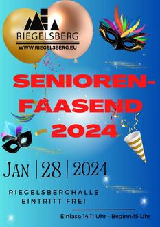 Am Sonntag, 28. Januar 2024, ab 15.00 Uhr, lädt die Gemeinde Riegelsberg, insbesondere Bürgermeister Klaus Häusle, zur traditionellen Seniorenfaasend ein.