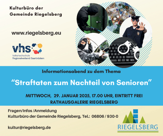 Eintritt frei, Anmeldung erwünscht – Kulturbüro der Gemeinde Riegelsberg, 06806/930-0, kultur@riegelsberg.de, www.riegelsberg.eu