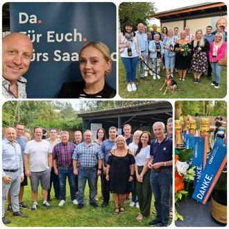 Zur gemütlichen und familiären Runde lud der CDU Kreisverband Saarbrücken Land am 15.09.2023 zum diesjährigen Sommerfest ein. Getroffen wurde sich auf Grillgut und kühle Getränke im Obst- und Gartenbauverein Heusweiler. Zahlreiche Mitglieder folgten der Einladung und genossen sichtlich das Beisammensein. In seinem Grußwort betonte unser Kreisvorsitzender Ralph Schmidt noch einmal die Wichtigkeit der Gemeinschaft. Er wolle alles geben, um für uns die Wahl zum Regionalverbandsdirektor für sich zu entscheiden und freue sich über die Unterstützung der Mitglieder. Ebenfalls der Einladung gefolgt war unsere Generalsekretär Frank Wagner, der aus Aktualität noch einmal betonte, dass die CDU ihrer Linie treu bleibe und ihre Ideen und Vorschläge nicht von Extremisten zerstören oder madig machen lassen würde. Man dürfe sich nicht aus der Bahn werfen lassen. „Wir arbeiten für die Menschen. Wir können nicht unsere über Wochen und Monate vorbereiteten und gut ausgearbeiteten Gesetzentwürfe immer wieder zurückziehen. So kommt man nicht weiter.“ so Wagner. Auch unsere stellvertretende Generalsekretärin Carolin Mathieu wollte es sich nicht nehmen lassen beim Sommerfest dabei zu sein und brachte noch eine große Ladung leckerer Backwaren zur Feier. Eine ganz besondere Überraschung gab es noch für den Ortsverband Geislautern. Mit einem Blumenstraß und Wein bedankte sich Ralph Schmidt noch einmal für die gelungene Ausrichtung des diesjährigen Kreisparteitages.