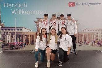 Am Berliner Hauptbahnhof stand zunächst die Anmeldung und Einweisung durch das JtfO-Team vor Ort an. Um die Dauer dieser Formalitäten zu überbrücken, kam der erste Ball zum Einsatz und die Teammitglieder spielten gemeinsam mit dem JKG-Fußballerinnenteam um Herrn Lutz Links, das sich ebenfalls für Berlin qualifiziert hatte, noch im Bahnhof Volleyball. Nach dem Bezug der Zimmer stand zunächst einmal ein gemeinsamer Besuch in der Stadt selbst an, die einigen Teammitgliedern bereits durch ihre letztjährige Teilnahme an JtfO bekannt ist.