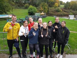 Mit neun Teilnehmern trat das JKG beim Cross-Duathlon der LTF Theeltal an. Dabei wurden alle schon am frühen Morgen durch das intensive Prasseln mehrerer ausgewachsener Herbstschauer geweckt. Es spricht für die Moral der Gruppe, dass keiner die Teilnahme zurückzog und zudem auch alle ihre Rennen mit Bravour beendeten. Dies war keineswegs banal, hatte es die Strecke über steile und glitschige Trails sowie völlig durchnässte Wiesen doch mehr als in sich.